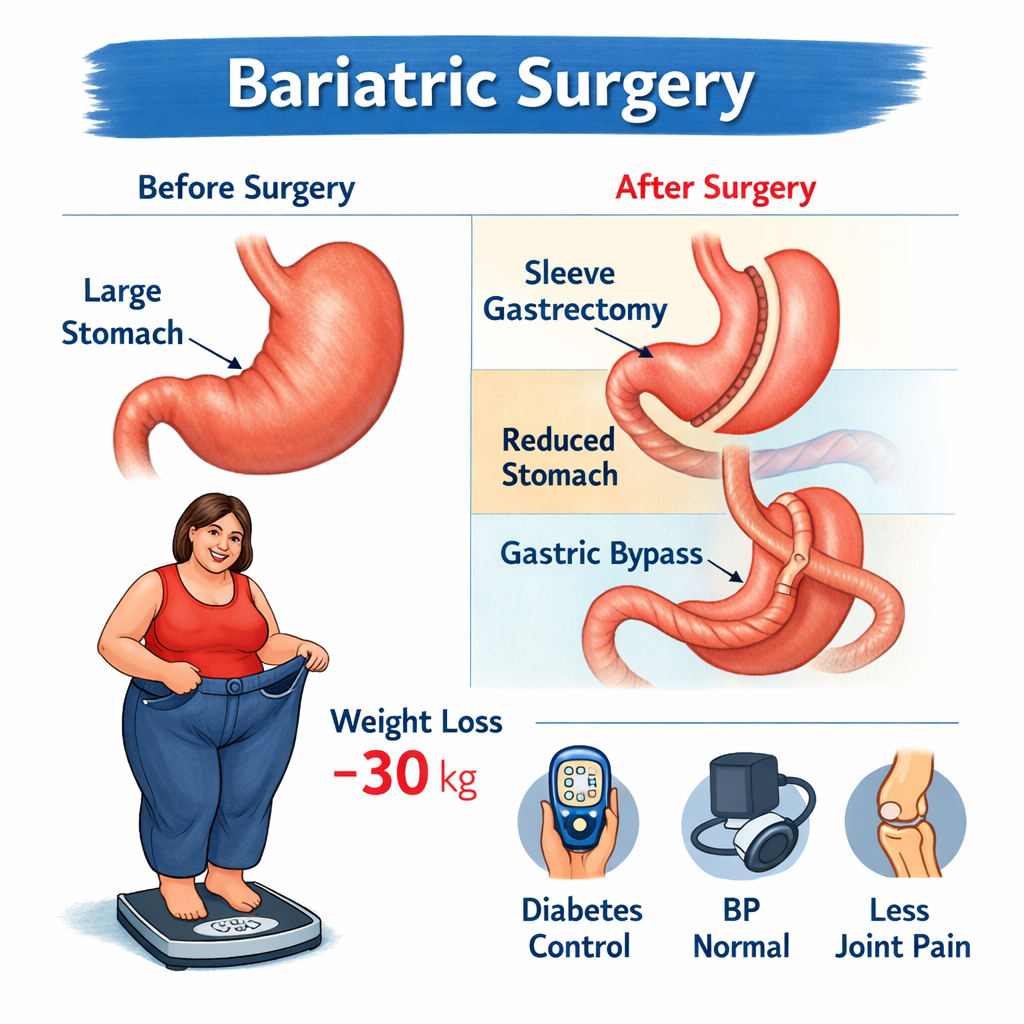 Along with lifestyle changes, bariatric surgery can improve overall health and reduce the risk of diseases like diabetes and heart disease.